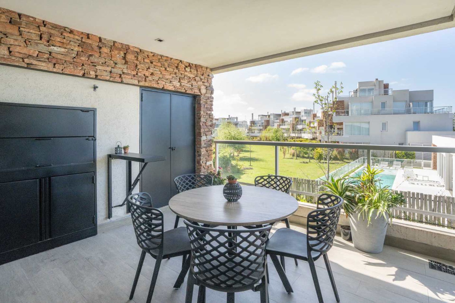 Departamento de 3 ambientes en el barrio Los Castaños, en Nordelta. 1 Piso con ASCENSOR Cuenta con un diseño moderno y una excelente vista a la pileta y al pulmón verde de Balconada. Ubicado en el primer piso y se puede acceder por ascensor. Tiene dos dormitorios, uno de ellos en suite con bañera y salida al balcón, ambos con placares con interiores y ventanas al exterior. La cocina está integrada en el living comedor y cuenta con una salida a un gran balcón terraza con parrilla. Los cerramientos son de alta calidad y la cocina tiene lavadero integrado, alacenas y lugares de guardado, vitro cerámica y horno eléctrico. El departamento cuenta con aire acondicionado en todos los ambientes y cortinas black-out en cada uno de ellos, cerramientos en la terraza a nuevo, todo en excelente estado. El Barrio Los Castaños es un prestigioso barrio ubicado en Nordelta, un exclusivo complejo urbanístico en Tigre, provincia de Buenos Aires, Argentina. Es uno de los barrios más destacados y buscados dentro de Nordelta debido a su ubicación privilegiada y sus comodidades. El barrio Los Castaños se caracteriza por sus amplias y hermosas áreas verdes, con calles arboladas y una cuidada planificación urbana. Ofrece una gran variedad de propiedades, desde casas hasta departamentos, con diferentes estilos arquitectónicos y diseños. En cuanto a las comodidades, el barrio cuenta con seguridad las 24 horas del día, control de acceso y sistemas de vigilancia, lo que brinda tranquilidad y protección a sus residentes. También ofrece espacios recreativos, como plazas, parques y áreas de juegos para niños. Además, Los Castaños cuenta con amenities para el disfrute de sus residentes, como canchas de tenis y fútbol, piscinas, gimnasio, salón de usos múltiples y club house. También se encuentra cerca de colegios, centros comerciales, restaurantes y otros servicios, lo que brinda conveniencia y acceso a todo lo necesario en la vida diaria.