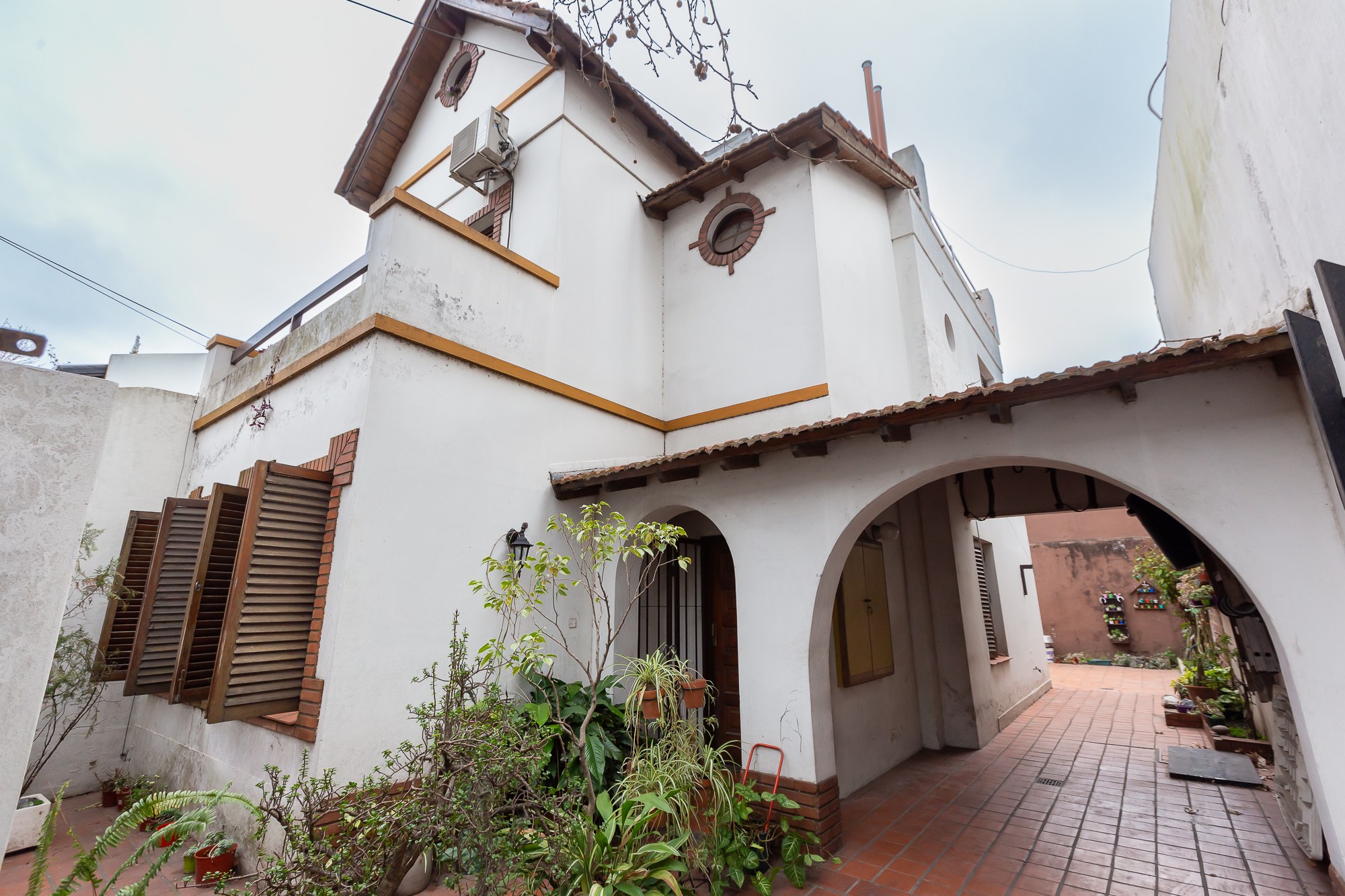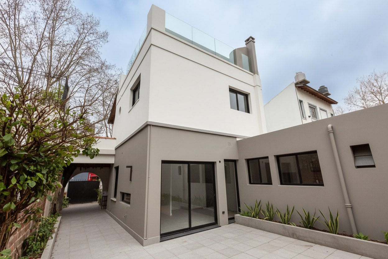 Casa 4 ambientes para actualizar Planta baja Ingreso a amplio living-comedor con techos altos y gran luminosidad. Hall de distribución que puede funcionar como comedor diario. Toilette de recepción. Cocina con espacio de lavadero. Dormitorio de servicio con baño. Gran patio ideal para parrilla y reuniones. Garage semicubierto para 2 autos. Planta alta 3 dormitorios: 2 al contrafrente que comparten un baño completo; dormitorio principal en suite al frente con balcón. Segundo piso Acceso por escalera caracol a pequeño estar, amplia guardilla y terraza. Características destacadas Ambientes amplios y bien distribuidos. Excelente potencial para modernizar o mantener el estilo original. Ideal familia por la cantidad de dormitorios, espacios de servicio y patio.