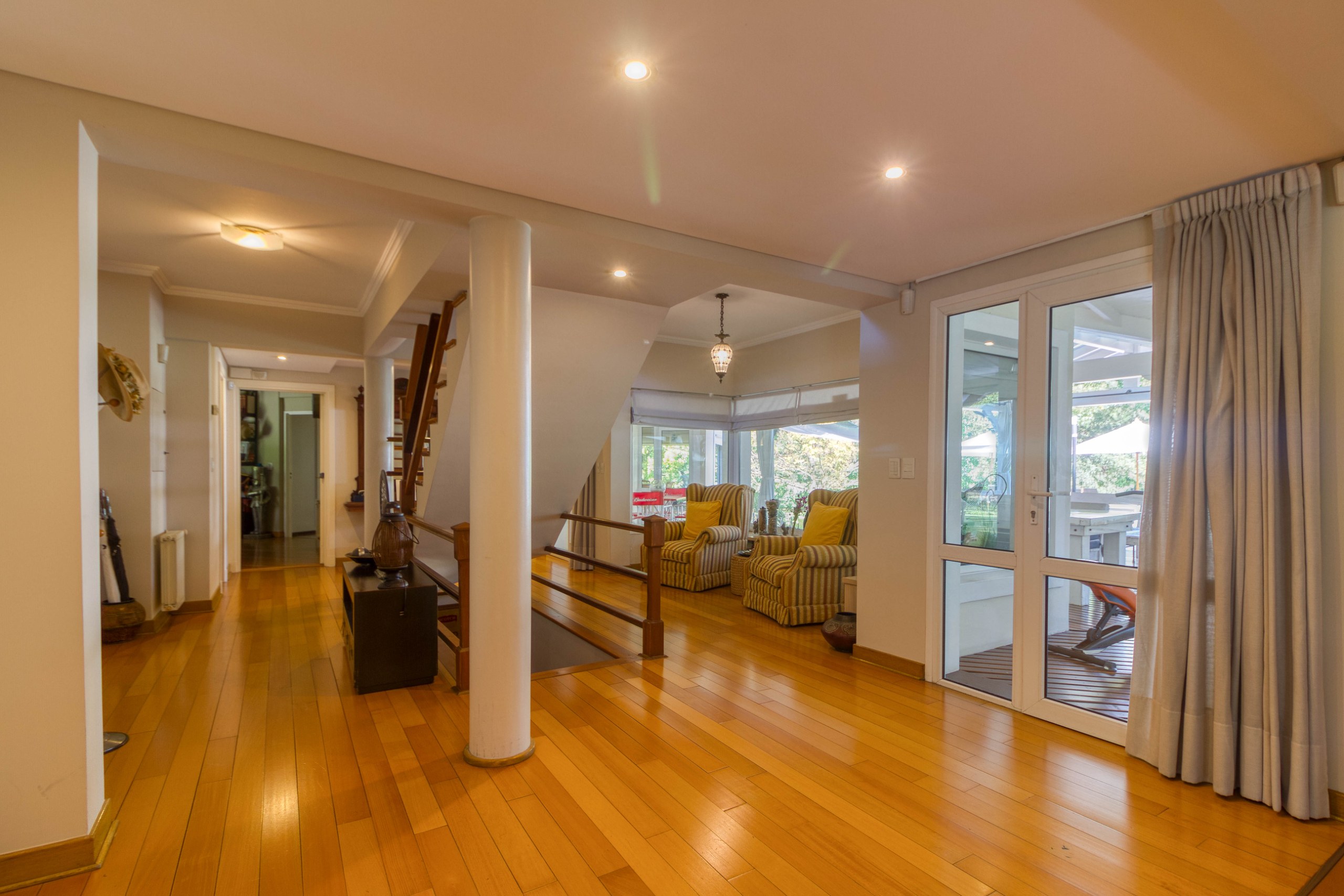 Imponente casa desarrollada en 3 plantas, amplia, luminosa y de excelente calidad constructiva, emplazada sobre un espectacular terreno de 3.000 m², con abundante arboleda y gran privacidad, dentro de un Barrio Privado de excelencia con excelente acceso a Panamericana . Planta baja: Se destaca un amplio living con vistas abiertas al jardín y pisos de Roble Americano, gran escritorio con baño completo, toilette y lavadero independiente conectado a la cocina. La cocina ofrece un encantador comedor diario con vista al parque, ideal para disfrutar todos los días. La propiedad cuenta con doble circulación, integrando cómodamente el escritorio con el sector comedor y cocina. Subsuelo: Nos encontramos con un excelente sector de Cava y sala privada de juegos/música. 1er Piso: Aquí se encuentra la Master Suite con vestidor, hogar, hidromasaje y un divino balcón aterrazado. También encontramos tres dormitorios Junior todos en suite, garantizando privacidad. Además, esta planta ofrece un cómodo sector de escritorio. Segundo piso: Aquí se ubica un dormitorio adicional, muy luminoso, que puede usarse perfectamente como escritorio privado. La propiedad se completa con un gran parque con pileta de nado descubierta y climatizada, amplia pérgola y espacios pensados para disfrutar al aire libre. Características destacadas: -Terreno de 3.000 m² (3 lotes) con gran arboleda y privacidad -Barrio con doble alambrado de seguridad, un diferencial poco común -Cocheras cubiertas para 6 autos -Grupo electrógeno a gas -Calefacción por radiadores -Aire acondicionado en todos los ambientes Amenities del Barrio: -Gimnasio equipado con aparatos. Sauna. -Club House. -Sala para reuniones. -Restaurant y confiteria. -2 Piscinas, para niños y para adultos. -Plaza con juegos para niños. -Canchas de fútbol en cesped. -3 canchas de tenis de polvo de ladrillo. -Canchas de vóley y hockey. -SUM. Una casa única, ideal para quienes buscan amplitud, privacidad, seguridad y calidad en un entorno natural privilegiado.